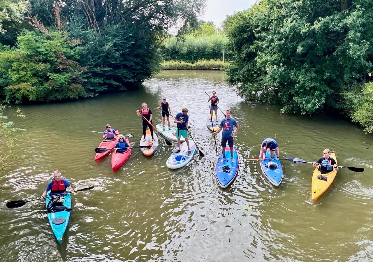 Mikey hat sich mal etwas Originelles einfallen lassen, und konnte 11 Mitglieder (5 mit SUP und 6 mit Kajak) für eine längere Anreise nach Utrecht überreden. Es hat sich echt gelohnt, und bei bestem Wetter haben wir Utrecht von seiner schönsten Seite, nämlich vom Wasser kennengelernt. Etwas außerhalb sind wir gestartet, und kamen nach einer ca. 2 Km langen landschaftlichen schönes Strecke in der quirligen, sehr grüne Innenstadt mit ihren alten Häusern an. Direkt an den Kanälen mit ihren Tunnels und Brücken paddelten wir an sehr vielen voll besetzten Restaurants vorbei , so nah, dass die SUPer sehen konnten was es auf den Tellern zu essen gab. Sehr schöne 14 Km sind wir durch Utrecht auf einer abwechslungsreiche Strecke gefahren. Wir werden nochmal wiederkommen, war der klare Wunsch.